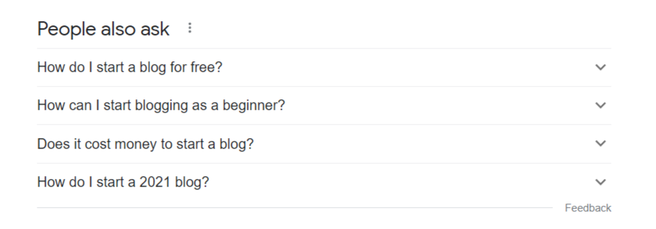 In this section, Google will tell you what other questions are people asking Google, related to the core topic.